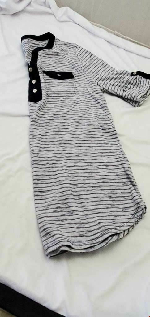Croft & Barrow Women's Top Black White V Neck Short Sleeve Front Pockets Tee