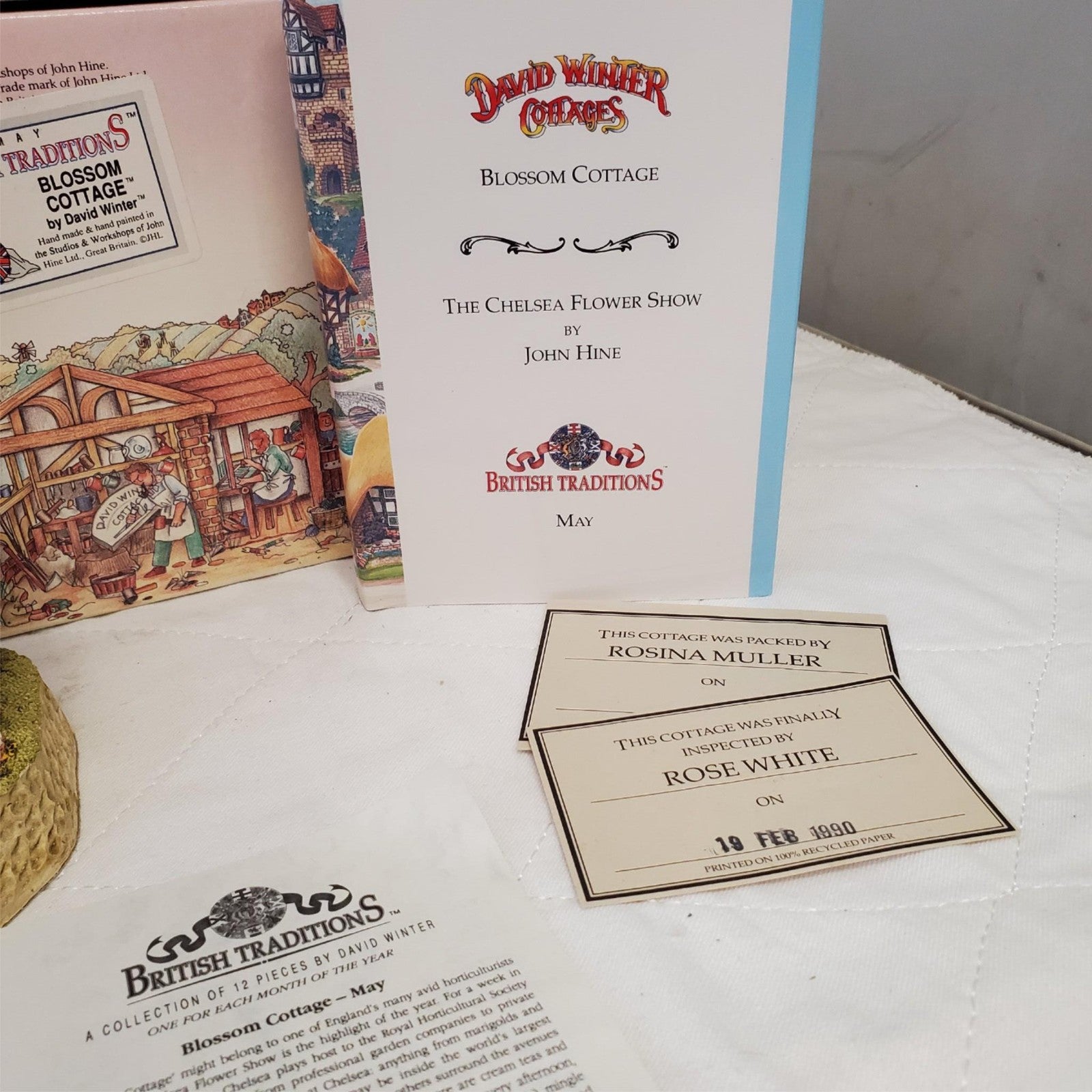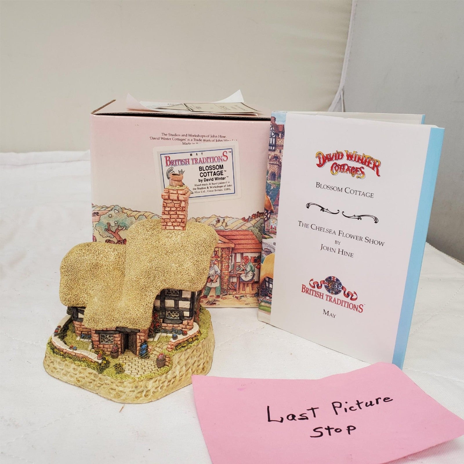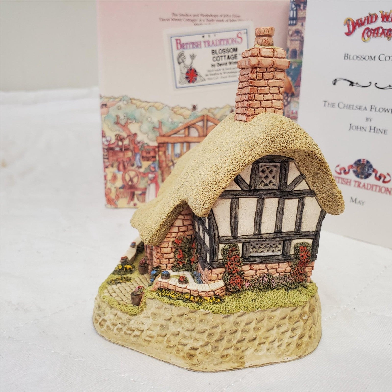 David Winter Cottages May British Traditions Blossom Cottage with Book