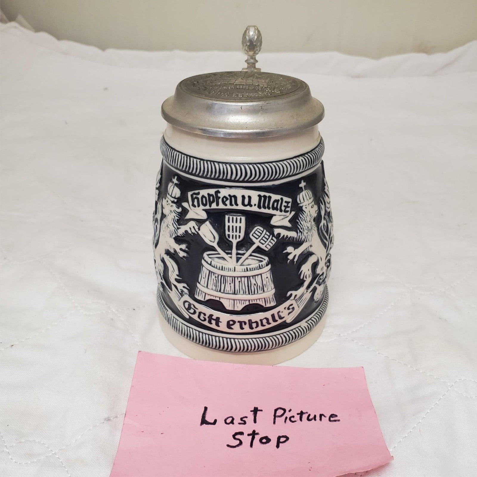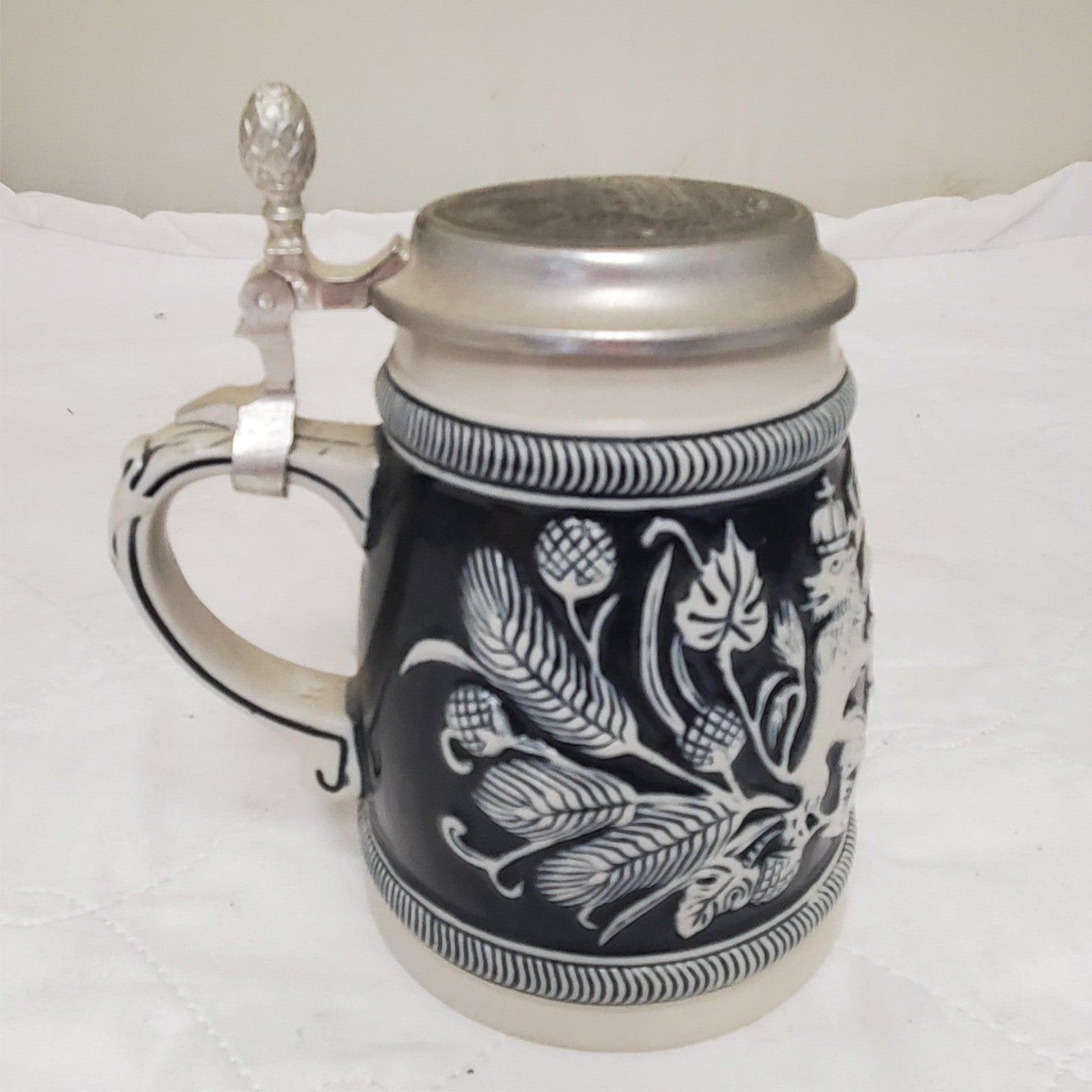 Handcrafted German Hopfen Und Malz Traditional Ceramic Beer Stein with Lid
