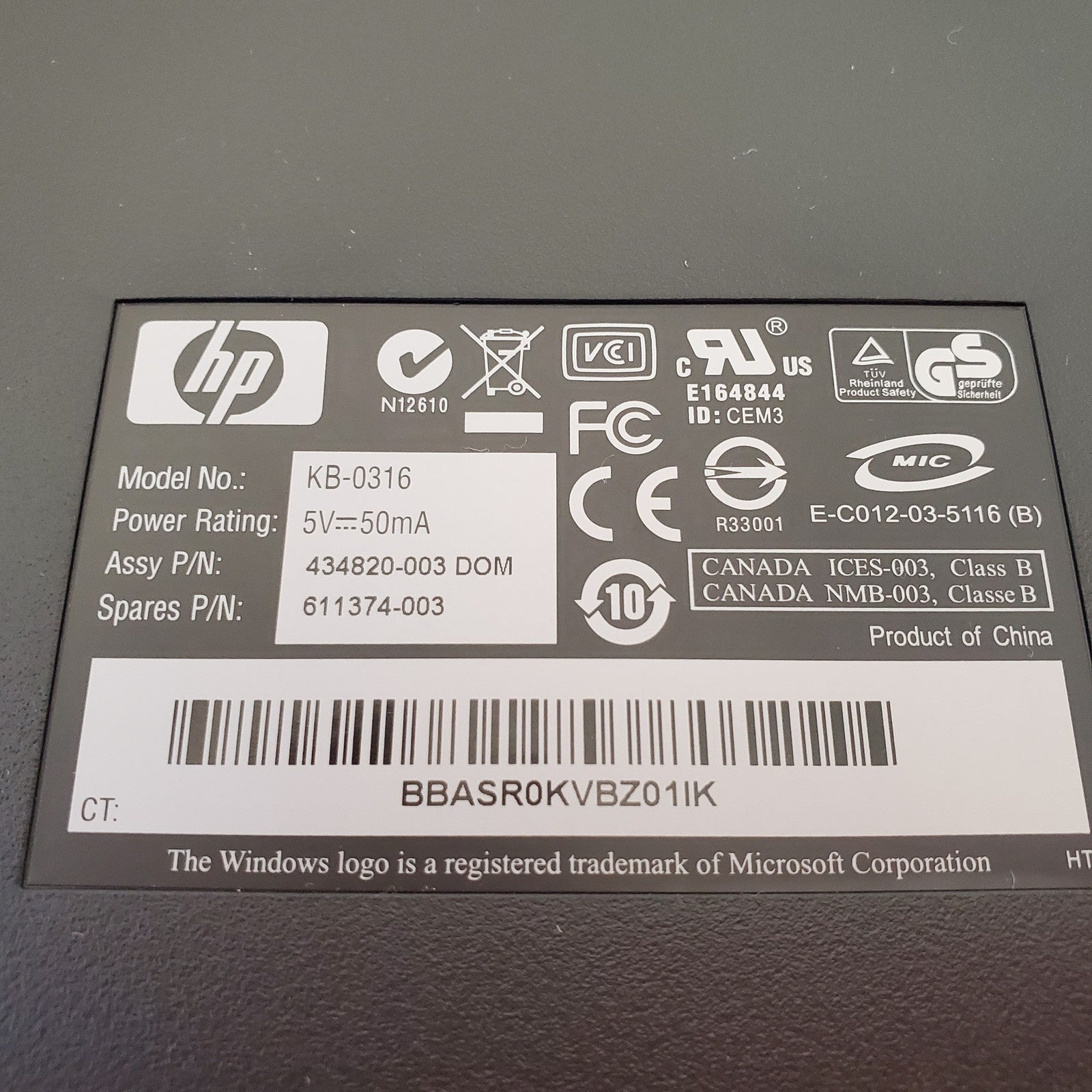 HP 434820-003 KB-0316 Wired Keyboard Black Silver