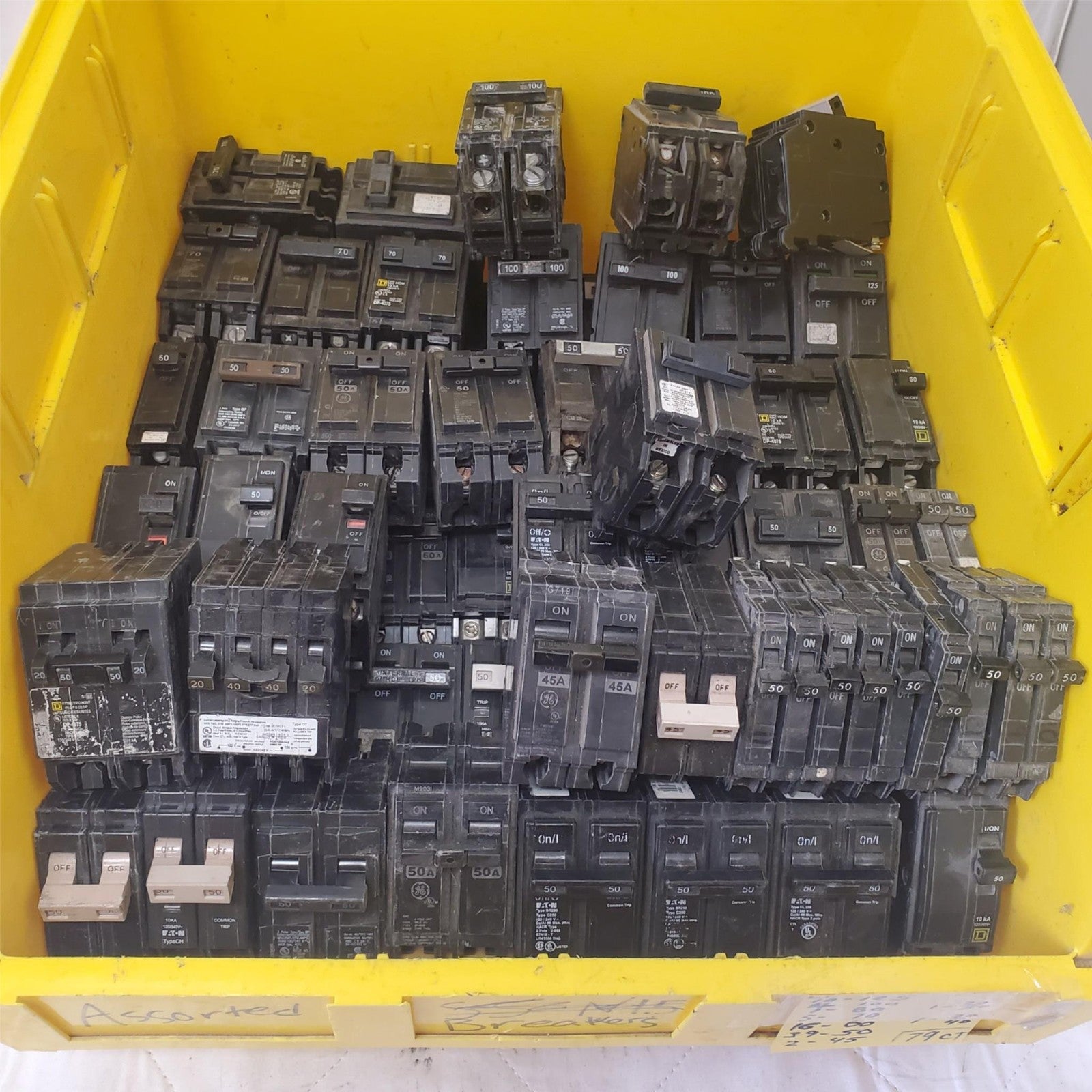 Large Lot of 79 used circuit breakers Assorted