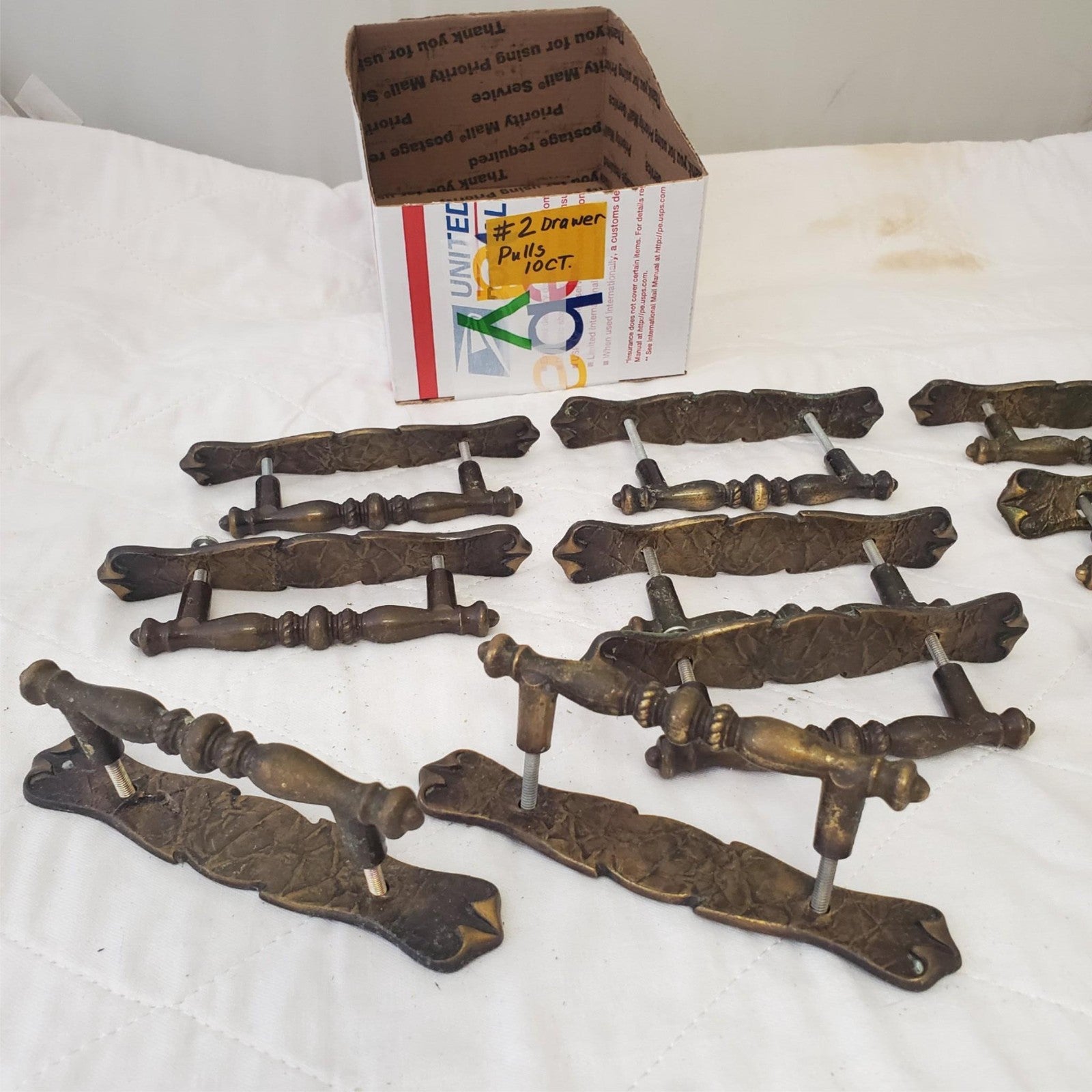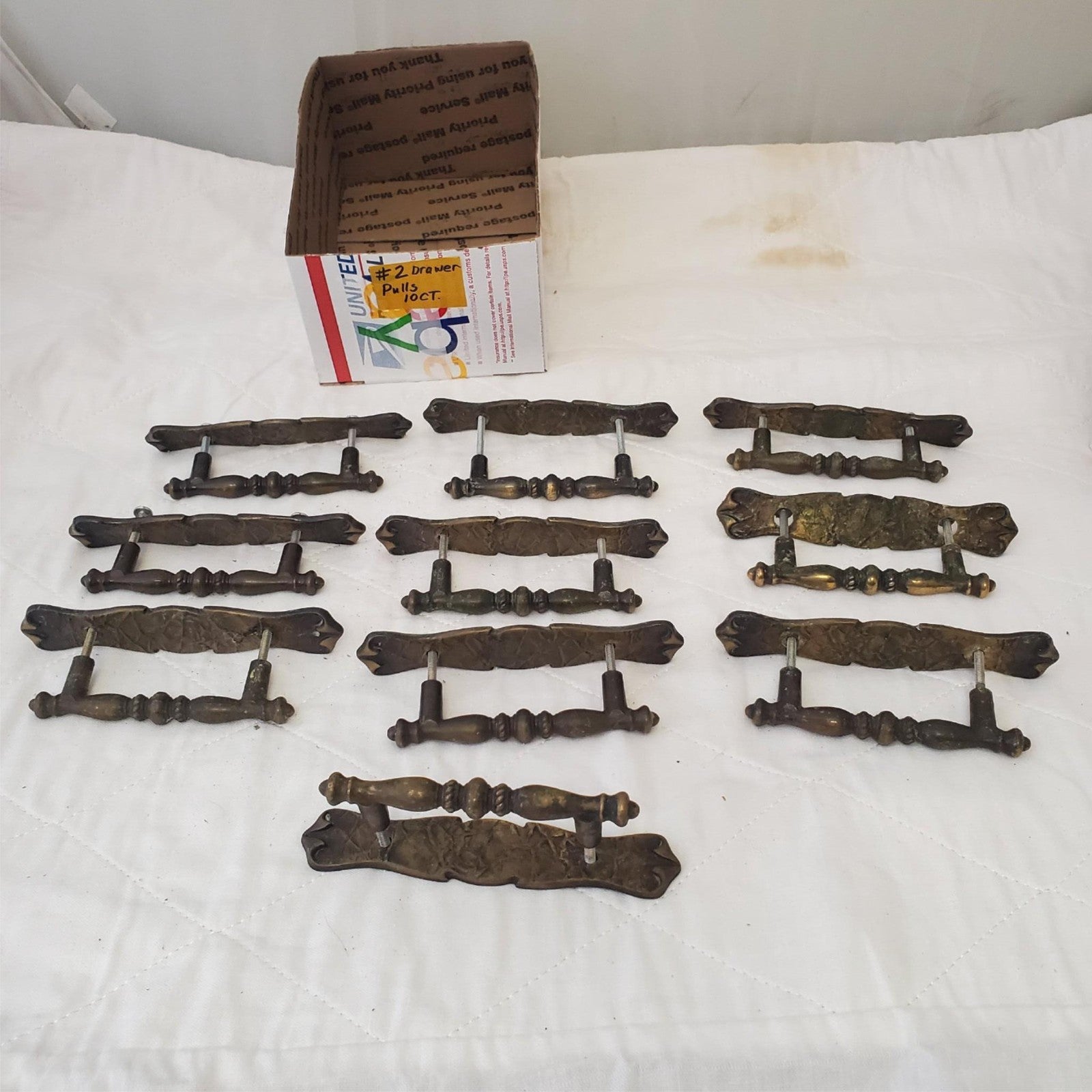 Lot of 10 Vintage Brass Amerock Carriage Cabinet Drawer Pulls w/ Back Plates #2