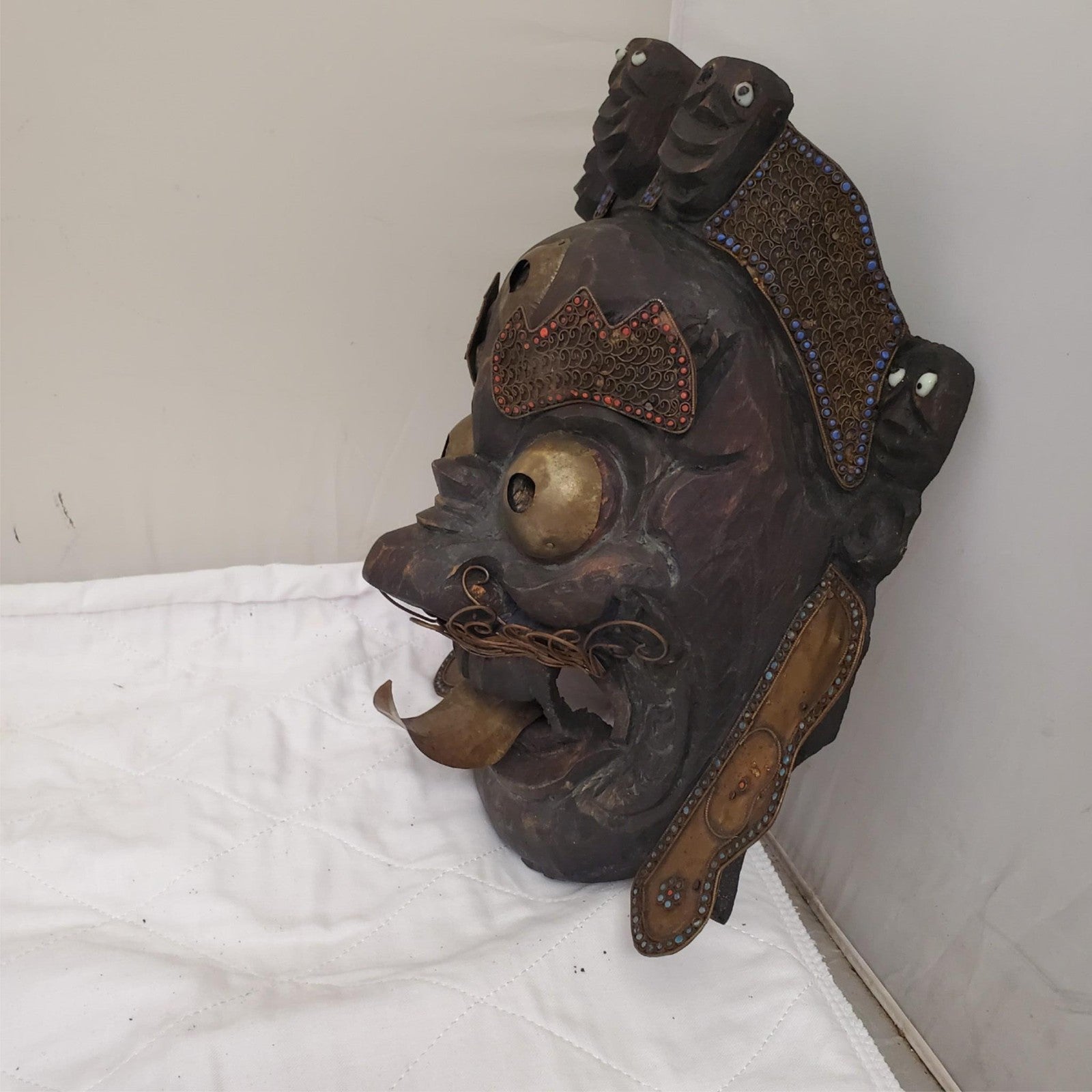 Ornate Tibetan Buddhist Mahakala Mask for Spiritual Display